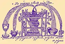 Dan Chopyk describes the written language characteristics of Skovoroda's fables as mixed: "His fables, written in a mixed Russian-Ukrainian-Church Slavonic language were, according to Gorkij and Tolstoy, very effective and, judging by the number of extant copies, were equally liked by gentry and commoners."[14]