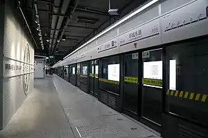 Huanchengdong Road (simplified Chinese: 环城东路; traditional Chinese: 環城東路; pinyin: Huánchéng Dōng Lù) is a station on Line 5 of the Shanghai Metro. Located at Nanqiao East Huancheng Road and Hangnan Highway in the city's Fengxian District, the station is located on the main branch of Line 5 and opened as part of the southern extension of Line 5 on 30 December 2018.[1] It is an underground station. During the planning stages and early part of construction, it was known as Huandong Road (环东路; 環東路).[2][3]