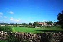 The other well-known hacienda of the area is San Miguel Regla, which is located just outside the town of Huasca, in a community also called San Miguel Regla. This hacienda was constructed by Romero in the 18th century and is also dedicated to mining.[4][12] The hacienda conserves many of its structures such as the five-meter stone perimeter wall, arches of the main patios, the main house, the smelting ovens (now flooded), holding tanks for ore and the gardens.[5] Much of the former property of San Miguel Regla is now ejido land,[4] but the complex has been converted into a hotel and ecotourism park. The main house is a luxury hotel, with small villas constructed over the property connected by footpaths. The gardens of the area are maintained as they were in the 18th century, with a modern heated swimming pool added. Other offerings include a clay tennis court, bar, game room, videorental and a meeting hall that accommodates 160 people. The lake by this hacienda has walking paths, fountains and a Greek-style theatre.[2][12]