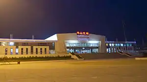 The Huashan North railway station (Chinese: 华山北站) is a railway station located in Huayin, Weinan, Shaanxi, China. There is 5 km from Mount Hua spots, travel bus from there can take you to Huashan visitor center. It was opened on 6 February 2010, along with the Zhengzhou–Xi'an high-speed railway.[1]