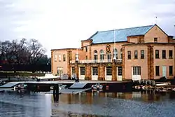 Hubbard Hall, often called "The Boat House," is the historic home of the United States Naval Academy's rowing teams in Annapolis, Maryland. Located on Dorsey Creek, off of the Severn River, it was completed in 1930 for the 40-man heavyweight rowing team. It supports the men's lightweight and heavyweight teams and the women's team with over 200 members. The Academy is in the process of completing a new USD $20 million renovation of the entire building including the rowing tank.