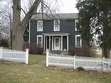 The Hubbard House was built the year after Elbert was born when the Hubbards moved to Hudson, north of Bloomington.[2] The Hubbards first occupied a farm house on the outskirts of Hudson but were occupying the east portion of the Hubbard House, in town, by the next year.[3] Elbert grew up in the house and attended school in the small village of Hudson. Later on in his life his writing would contain many scenes drawn from his boyhood experiences there.[2] Around 1872, at the age of 16, Elbert Hubbard left Hudson for Buffalo and a job as a partner in a soap company where he earned a "modest fortune". The same year the additional west portion of the house was constructed.[3] It was in 1892 that Hubbard suddenly gave up the soap industry and decided to become a writer. In 1899 Hubbard published the famous and widely reprinted essay, "A Message to Garcia". By 1913 an estimated 40 million copies had been published.[2]