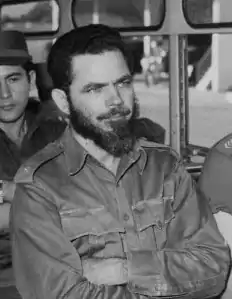 In September 1959, Matos wrote: "Communist influence in the government has continued to grow. I have to leave power as soon as possible. I have to alert the Cuban people as to what is happening." On 19 October, he sent a second letter of resignation to Castro.[2] Two days later, Castro sent fellow revolutionary Camilo Cienfuegos to arrest Matos. Matos says that he warned Cienfuegos that his life was in danger, that Castro resented Cienfuegos' popularity and had purposely infuriated and seemed to have hoped that Matos' supporters would kill him rather than allow him to take command from Matos.[3] Cienfuegos listened but relieved Matos of command and arrested Matos and his military adjutants.[4][lower-alpha 1] Cuban Communists later claimed Matos was helping plan a counter-revolution organized by the American Central Intelligence Agency and other Castro opponents, an operation that became the Bay of Pigs Invasion.[5]