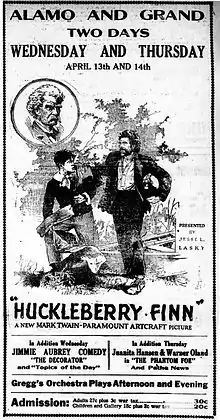Huckleberry Finn is a surviving American silent dramatic rural film from 1920, based on Mark Twain's 1884 classic Adventures of Huckleberry Finn. It was produced by Famous Players-Lasky and distributed through Paramount Pictures. William Desmond Taylor directed Huckleberry Finn, as he had the 1917 film version of Tom Sawyer, using a scenario written by Julia Crawford Ivers, who also had been the writer for Tom Sawyer.[1]