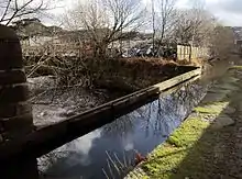 The section of canal through Slaithwaite town centre, between locks 21E and 23E, had been culverted and a car park covered part of the route.