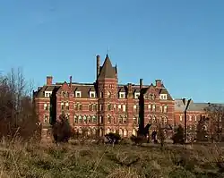 The Hudson River State Hospital is a former New York state psychiatric hospital which operated from 1873 until its closure in the early 2000s. The campus is notable for its main building, known as a "Kirkbride," which has been designated a National Historic Landmark due to its exemplary High Victorian Gothic architecture, the first use of that style for an American institutional building.[2][3] It is located on US 9 on the Poughkeepsie-Hyde Park town line.