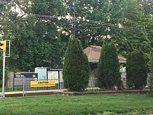 Trolleys arriving at this station travel between 69th Street Terminal in Upper Darby, Pennsylvania, and Orange Street in Media, Pennsylvania. The station has a P&W-era stone shed with a roof where people can go inside when it is raining on the northwest corner of the grade crossing. On the opposite side of this shelter is an ordinary bench. Huey Avenue is the first/last stop along the Route 101 line that doesn't share a right-of-way with the Route 102 line to Sharon Hill, Pennsylvania.
