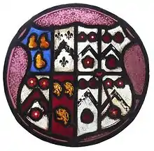 Stucley married Jane[lower-alpha 1] Pollard, second daughter of Sir Lewis Pollard (c. 1465 – 1526), lord of the Manor of King's Nympton in Devon, Justice of the Common Pleas from 1514 to 1526,[6] and Member of Parliament for Totnes, Devon, in 1491. Jane's brother was the influential Sir Richard Pollard (1505–1542), MP, of Putney, Surrey, who was an assistant of Thomas Cromwell in administering the surrender of religious houses following the Dissolution of the Monasteries and who in 1537 was granted by King Henry VIII the manor of Combe Martin in Devon,[7] and in 1540 Forde Abbey. An heraldic stained-glass roundel survives in the south window of the Pollard Chapel in the south aisle of King's Nympton Church showing the arms of Stucley impaling Pollard, with quarterings of each family.[lower-alpha 2]