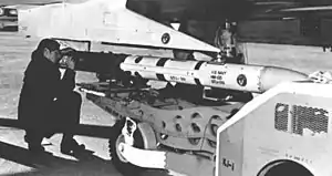 The first air-to-air anti-radiation missile developed by the United States,[4] the Brazo utilised the airframe of the existing AIM-7E Sparrow air-to-air missile, fitted with a new, Hughes-built passive radar seeker head developed by the Naval Electronics Center.[5] The seeker was intended to detect and home on enemy radar emissions, such as those on interceptor and AWACS aircraft.[6]