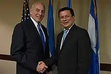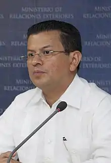 Hugo Roger Martínez Bonilla (born 2 January 1968) is a Salvadoran industrial engineer, politician, diplomat and writer. He is a member of the Farabundo Martí National Liberation Front (FMLN), one of the two major political parties in El Salvador. Martínez served as Foreign Minister of El Salvador from 2009 until 2013 under former President Mauricio Funes and again from 2014 to 2018 within the government of President Salvador Sánchez Cerén.[1] In 2019, being the ruling party presidential candidate, he came 3rd with 14%.