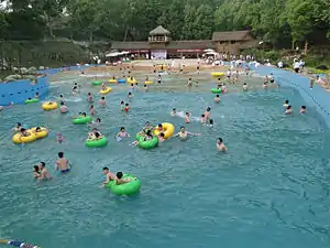 Huitang Hot Spring (灰汤温泉) and Peace Valley of Mount Dongwu (东鹜山桃花谷) are scenic spots in the town.[3]