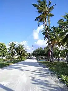 Meedhoo (Dhivehi: މީދޫ) is the oldest populated island in Addu Atoll, having been settled between 1000 and 500 BCE.[3] Its name comes from the original Indo-Aryan settlers, the "dhoo" comes from sanskrit "dwīpa" meaning island but the meaning of "mee" is obscure.