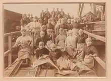 The Hultons accrued much wealth from the coal under their estate. It was mined from the 1550s, but its worth became clear as industrialisation took hold in the late-18th and early-19th centuries.[17] William Hulton, who inherited the family estate in 1800, was responsible for the major developments that exploited the coal reserves in Hulton Park. He was a principal supporter of the Bolton and Leigh Railway, which transported the Hulton's coal to markets in Bolton, Manchester and Liverpool.[18] The railway pioneer, George Stephenson, stayed at Hulton Hall for three months while overseeing the railway's construction.[19] The line was opened for traffic on 1 August 1828, with 40,000 people in attendance to witness what the Bolton Chronicle described as an 'interesting and novel spectacle'.[20] The Bolton and Leigh Railway was the first railway line to operate in Lancashire. In 1858, William Hulton founded the Hulton Colliery Company in partnership with Harwood Walcot Banner. Their partnership was dissolved ten years later and from 1868 onwards the company traded under the Hulton name. The Hultons gave up control of the coal mines in 1886 after the Hulton Colliery Company was founded.[21] In December 1910 a defective safety lamp caused an explosion in the Pretoria Pit killing 344 men and boys. It was the worst coal mining disaster in Lancashire, and the third worst in Britain.[22] By 1947, the Hulton coal empire could claim to be the largest in Lancashire, but it gradually diminished in the second half of the 20th century due to a nationwide fall in demand.[23]