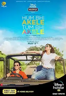 Hum Bhi Akele Tum Bhi Akele (transl. We both are alone) is a 2021 Indian Hindi-language film written and directed by Harish Vyas and produced under the banner of First Ray Films.[1] The film stars Anshuman Jha, Zareen Khan along with Ravi Khanvilkar, Gurfateh Pirzada and Nitin Sharma in supporting roles.[2][3][4] The film was released on 9 May 2021 on Hotstar.[5] It received generally mixed reviews, with praise for its performances and LGBT themes, but criticism for its screenplay and second half.