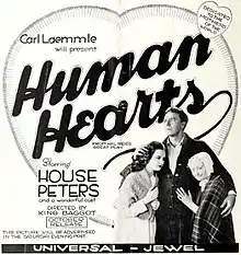 Human Hearts is a 1922 American silent rural drama film directed by King Baggot, and produced and distributed by the Universal Film Manufacturing Company. It stars House Peters. It is based on a play of the same name by Hal Reid.[1]