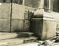 The branch reopened after the war, and the entrance soon became a famous landmark of the damage caused by the atomic bombing. It was officially recognized by Hiroshima City as an A-bomb site.[17] In those days, the shadow was called "Human Shadow of Death".[1][18] According to a testimony, it was the second most famous sight next to the Atomic Bomb Dome.[19] Sumitomo Bank went to great lengths to preserve the shadow. In 1959 they built a fence surrounding the stone, and in 1967 they covered the stone with tempered glass to prevent deterioration.[1][6][18]