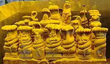 Crocodiles have appeared in religions across the world. Ancient Egypt had Sobek, the crocodile-headed god, with his cult-city Crocodilopolis, as well as Taweret, the goddess of childbirth and fertility, with the back and tail of a crocodile.[7] In Hinduism, Varuna, a Vedic and Hindu god, rides a makara, a water-beast like a crocodile,[14][15] and he is called Nāgarāja, lord of snakes.[15] Similarly the goddess personifications of the Ganga and Yamuna rivers are often depicted as riding crocodiles.[16][17][18] In Goa, crocodile worship is practised, as at the annual Mannge Thapnee ceremony.[19] In Latin America, Cipactli was the giant earth crocodile of the Aztec and other Nahua peoples.[20]