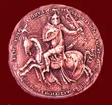Humbert's wife died around the start of 1347, shortly before he returned from the crusade.[8] As he was returning, he joined marquesses John II of Montferrat and Thomas II of Saluzzo in their fight against Robert's successor, Queen Joanna I of Naples, who was supported by the Savoyards. When Pope Clement VI brought the two sides to negotiations, the terms included the possibility of Humbert marrying Bianca of Savoy, though this did not reach agreement.[9]