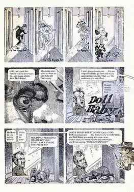 Underground cartoonist Robert Crumb said that the elaborate Davis–Elder cover to the second issue of Humbug "changed his life".[6] In 1958 Crumb and his brother Charles self-published three issues of Foo in imitation of Humbug and Mad.[11] Crumb paid homage to Humbug's detailed cover borders on every cover of his magazine Weirdo from the 1980s.
