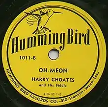 A rare 78rpm release on Humming Bird by noted Cajun music fiddler, Harry Choates