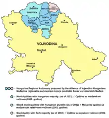 The Hungarian Regional Autonomy (Hungarian: Magyar Körzeti Önkormányzat) is the name of a proposed new administrative unit in the northern part of the Autonomous Province of Vojvodina in Serbia.