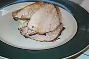 Hungarian cuisine is mostly continental Central European, with some elements from Eastern Europe such as the use of poppy, and the popularity of kefir and quark. Paprika is often associated with Hungary and is used prominently in several dishes. Traditional Hungarian paprika is characterised by its bright colour and distinct heat, differentiating it from milder variations of paprika popular elsewhere in the world.[3] Other herbs and spices commonly used in Hungarian cuisine include garlic, marjoram, caraway seeds, celery seeds and dill seeds.[4] Typical Hungarian food is heavy on dairy and meats, similar to that of neighboring Czech, and Slovak cuisines. Chicken, pork and beef are common, while turkey, duck, lamb, fish and game meats are mostly eaten on special occasions. Hungary is also known for relatively inexpensive salamis and sausages it produces primarily from pork, but also poultry, beef and others.