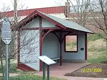 The Bowie Railroad Buildings comprise three small frame structures at the former Bowie train station, located at the junction of what is now the Northeast Corridor and the Pope's Creek Subdivision in the town center of Bowie, Maryland. The complex includes a single-story freight depot, a two-story interlocking tower, and an open passenger shed.[4] The station was served by passenger trains from 1872 until 1989, when it was replaced by Bowie State station nearby. The buildings were restored in 1992 as the Bowie Railroad Museum and added to the National Register of Historic Places in 1998.