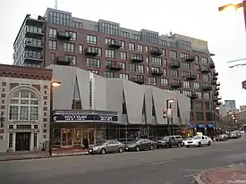 The Huntington Avenue Theatre, located at 264 Huntington Avenue, was built in 1925 as the Repertory Theatre, and was designed by J. William Beal's Sons in the Georgian Revival style.[7] The company built and operates the Stanford Calderwood Pavilion at the Boston Center for the Arts, located at 527 Tremont Street. It houses the 360 seat Virginia Wimberly Theatre, the Nancy and Edward Roberts Studio Theatre, Carol G. Deane Hall, and Nicholas Martin Hall.[8]