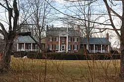 Huntland, originally known as New Lisbon, is a historic estate located at Middleburg, Loudoun County, Virginia. The original section was built in 1834, and is a two-story, five bay, Federal style brick dwelling. It built by master brickmason William Benton Sr., who also constructed nearby Oak Hill, the home of President James Monroe. In 1915, the house was remodeled and enlarged with side one-story brick additions and Colonial Revival-style detailing. The estate was also enhanced with gates, walls, and terraced gardens that are reminiscent of English manor estates and state-of-the-art kennels and horse stables. Also on the property are the contributing spring house, smokehouse, and a guest cottage, all constructed around 1834, and early-20th-century structures that include secondary dwellings, a dairy barn with attached silos and a corncrib, a milking parlor, five sheds, a garage, a pump house, and a cistern.[3]