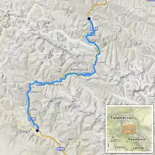 - Gilgit River basin marked on the OpenStreetMap, including the Hunza River basin.