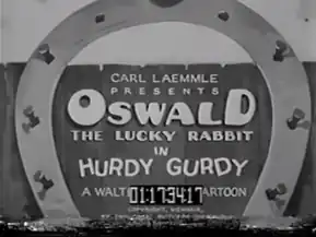 Hurdy Gurdy is a 1929[1][2] animated short film which is presented by Carl Laemmle and was produced by Walter Lantz,[1][3] who he and his wife would go on to make Woody Woodpecker.[4] The film, which is animated by R.C. Hamilton, Bill Nolan and Tom Palmer,[1] features Oswald the Lucky Rabbit,[3] who is substituted for the organ grinder's dancer,[1] after the original one is comically swallowed up by Oswald's bubblegum.[1]