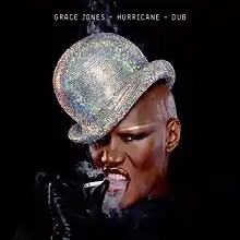 The dub re-release of Hurricane features new artwork by Jean-Paul Goude of Jones smoking a cigarette whilst wearing a sparkling hat.