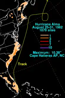 - David M. Roth (2009-09-28). Hurricane Alma – August 25–31, 1962 (Report). Hydrometeorological Prediction Center. Retrieved 2013-03-04.