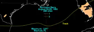 - National Hurricane Center (1983). "Preliminary Report: Hurricane Barry – Page 2 – Meteorological Statistics and Impact". National Hurricane Center. Retrieved April 3, 2007.