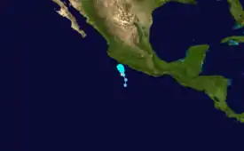A tropical disturbance south of the Gulf of Tehuantepec became better organized on June 29 and became a tropical depression.[11] Strengthening was very limited as the depression was approaching to land.[12] It made landfall later that day very near of Salina Cruz, Oaxaca.[13] As it continued its west-northwest track, it dissipated inland after bringing torrential rains.[14]
