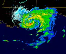 ![]() Hurricane Danny at peak intensity making landfall in Louisiana on July 19 | |