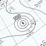 A tropical wave was reported to have passed through Cape Verde on October 4. The system slowly developed a vertex as it curved in a generally northward direction. By early on October 10, two ships reported that a tropical depression formed almost halfway between the Azores and the Leeward Islands. After six hours, the depression strengthened into a tropical storm. While re-curving to the northeast, the storm attained its maximum sustained winds of 65 mph (105 km/h); the lowest atmospheric pressure recorded in relation to the storm was 1,000 mbar (30 inHg), but the time of measurement is unknown. Although no significant weakening occurred, it eventually merged with an extratropical cyclone on October 14, while still well southwest of the Azores. During its extratropical stage, a ship in the area reported an atmospheric pressure as low as 979 mbar (28.9 inHg).[4]