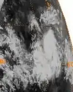A tropical wave that moved off the northwest coast of Africa on July 4 passed through the Atlantic Ocean and Caribbean Sea without significant development.[34] The wave moved across Central America into the northeastern Pacific Ocean on July 15. Thunderstorm activity increased in the system between July 16 and 18 before rainbands became present within the tropical disturbance on July 19. Tropical Depression Nine-E formed later that day while 565 mi (909 km) southwest of Acapulco, Mexico.[5]