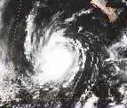 The hurricane began to turn west because of the strengthening and growing ridge to its north. Increasing outflow aloft began to form, and the hurricane reached its peak strength of 105 mph (169 km/h) with a well-defined eye at its center of circulation.[31][33] Genevieve turned northwest on July 16 into an area with strong vertical wind shear and low water temperatures. The hurricane quickly weakened into a tropical storm on July 17 and then into a tropical depression on July 18. Genevieve dissipated as a tropical cyclone later in the day, reduced to a circulation in the stratocumulus cloud field.[31]