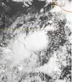 A tropical wave moved off the coast of Africa on June 25 and moved across the Atlantic Ocean and central Caribbean Sea with little development. Within the western Caribbean Sea, convection developed with the wave on July 7. The system became better organized as it moved into the northeastern Pacific Ocean. The system was upgraded to Tropical Depression Eight-E on July 11. The depression moved west-northwest, with a good outflow to the north, and gradually strengthened into Tropical Storm Genevieve later that day. Genevieve continued to strengthen, reaching hurricane strength on July 13.[31] The storm approached within 23 mi (37 km) of Socorro Island where a sustained wind of 44 mph (71 km/h) and gust of 50 mph (80 km/h) were reported, before the weather equipment on the island failed.[32]