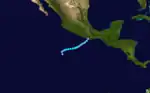 There was an absence in storm activity across the Central Pacific Hurricane Center's area of responsibility, as no storms developed in the basin. However, two tropical cyclones from the eastern Pacific, Greg and Jova, entered the central Pacific, the latter entering as a hurricane.[3] The season produced fifteen named storms and eight hurricanes;[4] both of these numbers were equal to the average. The season's one major hurricane, a storm with winds of at least 111 mph (179 km/h), was below the average of three.[5] There are also at least two tropical depressions that did not strengthen into tropical storms.[6] Six tropical cyclones made landfall in Mexico. First, Tropical Storm Adrian made landfall 240 mi (390 km) east-southeast of Acapulco, but did not cause any damage. Afterwards, Tropical Storm Irwin made landfall in Baja California Sur, but similarly to Adrian, did not cause any damage. Tropical Storm Knut later made landfall near Mazatlán with winds equivalent to a minimal tropical storm, but no deaths or damage was reported. Tropical Storm Lidia struck about 23 mi (37 km) south of Los Mochis on October 8, with winds of 45 mph (75 km/h). Heavy rainfall associated with the cyclone caused moderate damage in northwestern Mexico, and at least seventy-three deaths can be attributed to the storm. On May 30, an area of intense shower and thunderstorm activity located 270 mi (430 km) south of the Mexican coastline.[4] The second to strike the area in 10 days, Norma was absorbed by a frontal system on October 14.[7] The combined entity produced heavy rainfall and severe weather across Texas, which subsequently led to severe crop damage. The final storm to make landfall on Mexico during the 1981 season was Hurricane Otis. Intensifying into a hurricane by October 26, the hurricane brushed the coast of Jalisco before making landfall near Mazatlán at hurricane intensity on October 30. Otis was the second of two hurricanes to make landfall in the country this season.[5]
