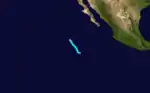 A tropical depression formed on October 6[8] ahead of a front;[11] the depression intensified into Tropical Storm Lidia on October 7. Lidia moved generally north, and reached its peak wind speed of 50 mph (85 km/h).[8] Despite encountering warm ocean temperatures, Lidia slowly weakened as it moved towards southern Baja California Peninsula. The tropical cyclone passed over the southern tip of the Baja California Peninsula on 1700 UTC October 7; at the time of the landfall Lidia was located about 65 mi (105 km) northwest of Cabo San Lucas. Two hours later,[4] Lidia entered the Gulf of California, and turned to the northeast.[8] Lidia made landfall on the shores of Sinaloa just south of Los Mochis on October 8, with winds of 45 mph (75 km/h).[4] The remnants of Lidia continued their northeast track, ultimately emerging into the Southern United States,[11] bringing moisture to extreme southeastern Arizona.[12]