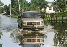 Hurricane Irene passed near the northwestern Bahamas, causing moderate flooding.[34] A tornado spawned by the storm on Abaco island deroofed a home, resulting in one death.[35] Four indirect fatalities occurred during a heavy rain when four persons in a truck that drove off a wet pier drowned.[15]