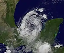 ![]() =Hurricane Nate at peak intensity to the west of the Yucatán Peninsula on September 8 | |
