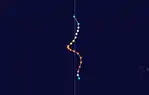 Patsy is also an uncommon west to east crosser of the dateline, and one of only a few storms known to have crossed the dateline twice.[6] Including only systems recognized by the Central Pacific Hurricane Center, there have been only six other recorded systems that have crossed the dateline from west to east.[18]