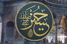 ![]() Calligraphic seal featuring Husayn's name, on display in the Hagia Sophia | |