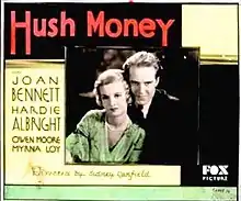 Hush Money is a 1931 American pre-Code comedy-drama film featuring Joan Bennett, Hardie Albright, Owen Moore, Myrna Loy, and George Raft. The movie was directed by Sidney Lanfield.[1]