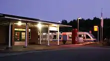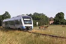 As a result of pressure from the state of Schleswig-Holstein, the Deutsche Bundesbahn has invested in the line since the early 1990s. The introduction of regional fast trains (Regionalschnellbahnen) and hourly regular interval services with modern class DB-628 diesel multiple units transformed the line. The operation was thus more efficient, faster and more attractive.[4] In 2000 the Nord-Ostsee-Bahn (NOB) service (now a subsidiary of Veolia Verkehr) won the tender with Alstom Coradia LINT and Bombardier Talent diesel multiple units. This company initiated consistent services from early morning to late evening and introduced Gleisradio (track radio), a special passenger information system using GPS.[5] Some of the rail services operate via Husum, Schleswig and Rendsburg to Kiel. Since 2011 services on the line have been operated by DB Regio Schleswig-Holstein (formerly called Regionalbahn Schleswig-Holstein), a subsidiary of DB Regio.