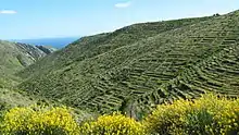 Hvar is a high east–west ridge of Mesozoic limestone and dolomite, which was part of the mainland until approximately 11,000 years ago. Around that time, sea levels rose, filling the valleys that are now the channels between the islands.[9] Hvar has a typical karst landscape, which means limited or no surface water, despite adequate rainfall, which disappears quickly into crevices in the ground. Farming in such areas requires careful conservation of water and protection of the soil against erosion. The water cisterns in the fields, and the dry-stone walls, especially terracing on the slopes are necessary for the continued success of agriculture on the island.[10]