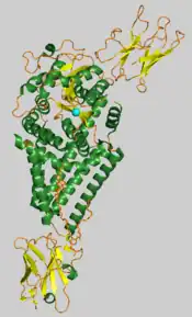 ![]() Chlorella virus hyaluronan synthase with the manganese ion shown as a cyan sphere.[1] | |||||||||